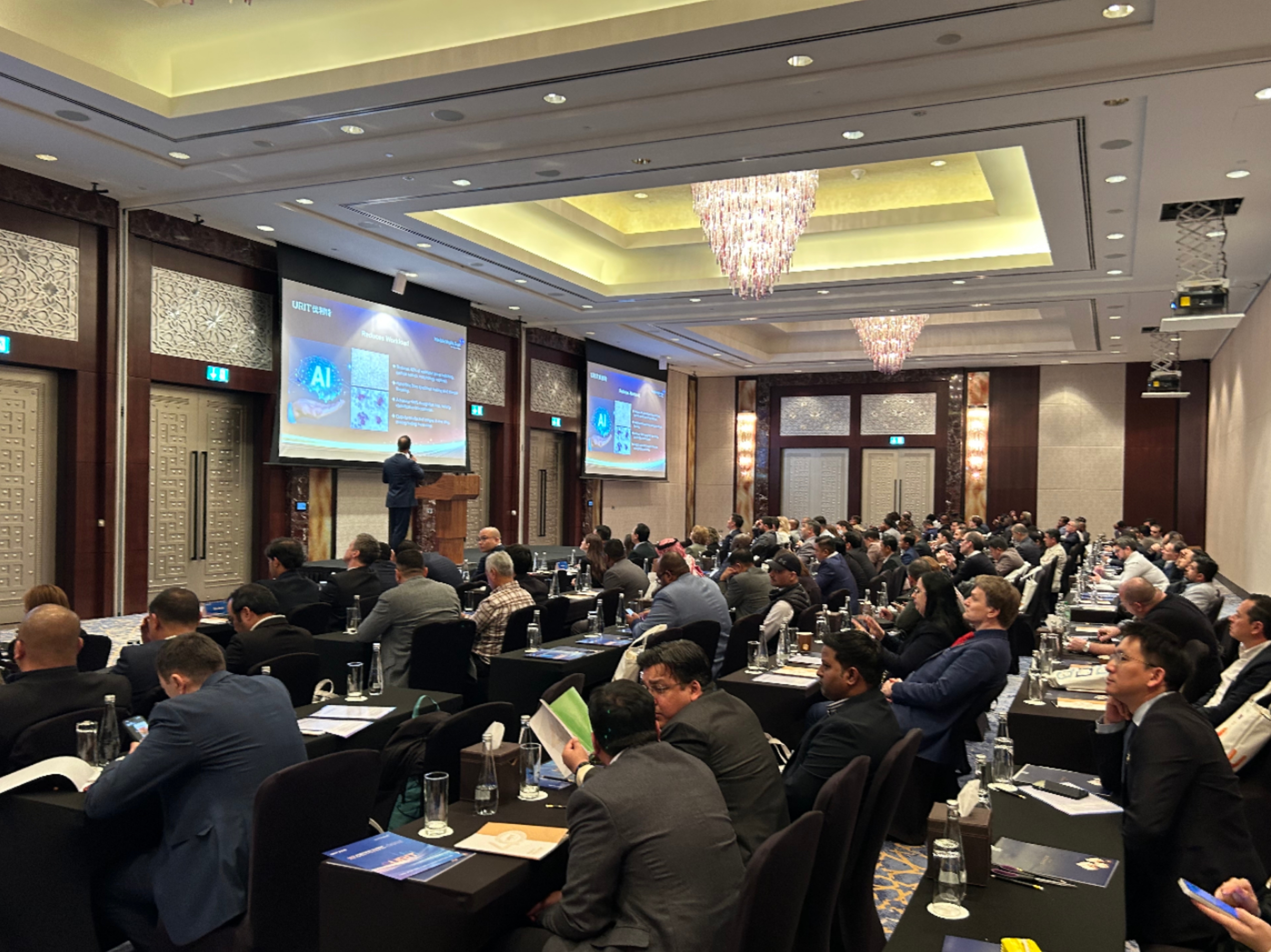 On the afternoon of February 4th, URIT hosted a grand Global Product Launch at the Conrad Dubai Hotel, unveiling a series of next-generation medical technologies to over 150 global clients and partners. This exclusive event provided a comprehensive look at the innovative features and advancements driving URIT’s new products, showcased through high-definition live demos across three large screens.