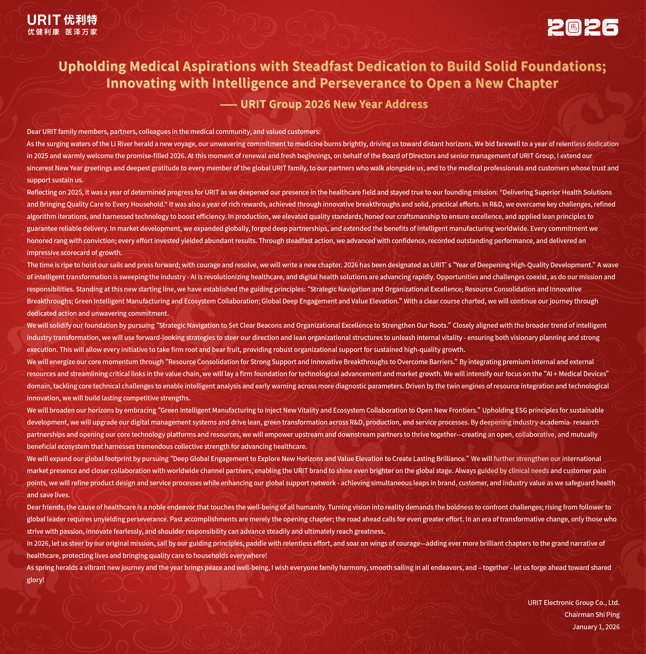 优利特集团2026年新年致辞